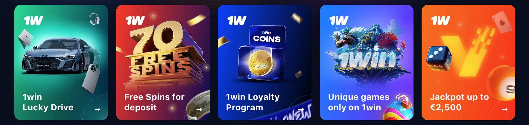 1win augstu novērtē savus lojālos klientus. Liekot likmes kazino spēlēs (izņemot dažas specifiskas kategorijas) un sporta derībās, jūs automātiski vācat īpašus lojalitātes punktus – 1win Coins. Sakrātās "monētas" vēlāk var konvertēt reālā naudā pēc noteikta maiņas kursa, kas ir atkarīgs no jūsu konta valūtas. Tā ir lieliska iespēja gūt papildu labumu par savu aktivitāti.